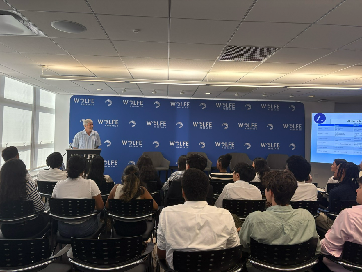 Every January, Wolfe hosts a Winter Break Onsite at the Wolfe HQ for students who want to learn more about undergraduate students to gain insight into the world of sell-side Equity Research and learn more about Wolfe. Students have the opportunity to observe a typical morning at Wolfe and network with our management team and employees across the firm.